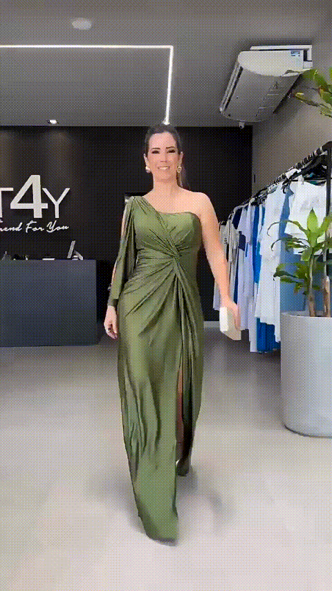One-Shoulder Kink Vented Slim Fit Dress (Buy 2 Free Shipping)
